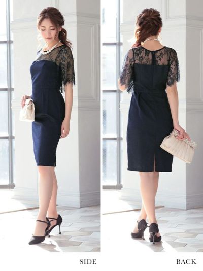 [Angel-R/エンジェルアール] 高級 肩出し 二の腕カバー バストコード スパンコール メッシュ ビジュー くびれ 谷間魅せ タイトミニドレス
