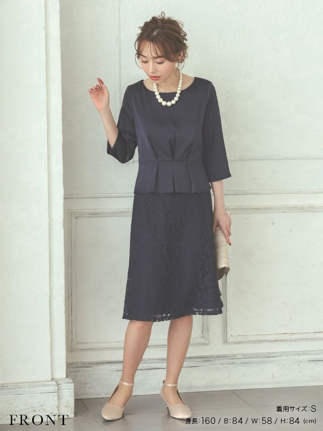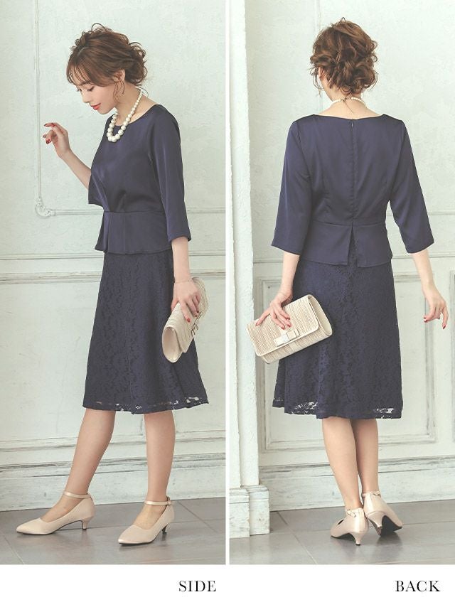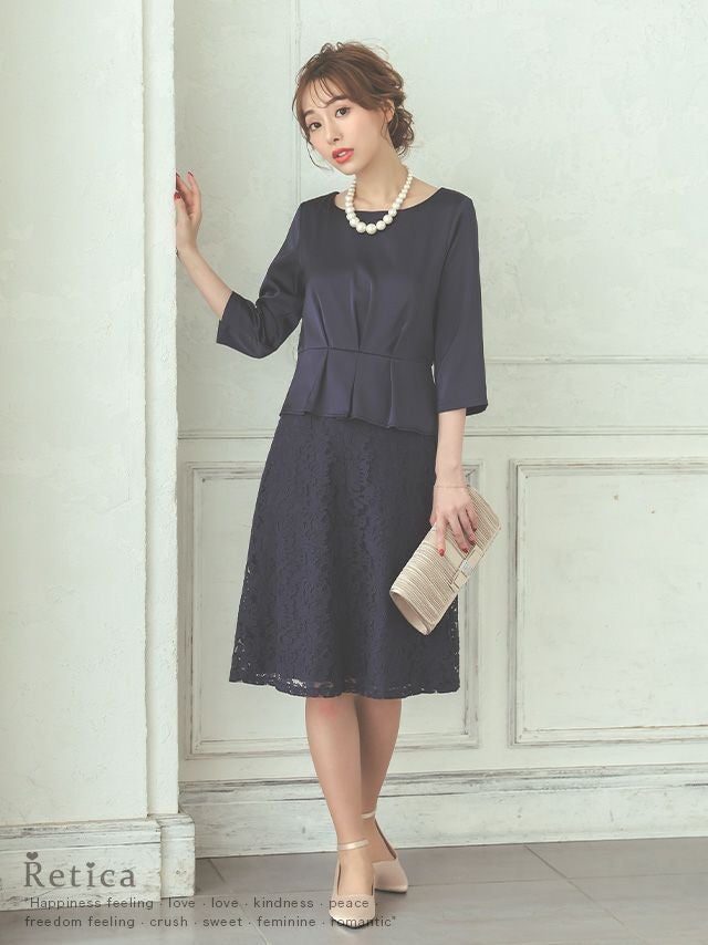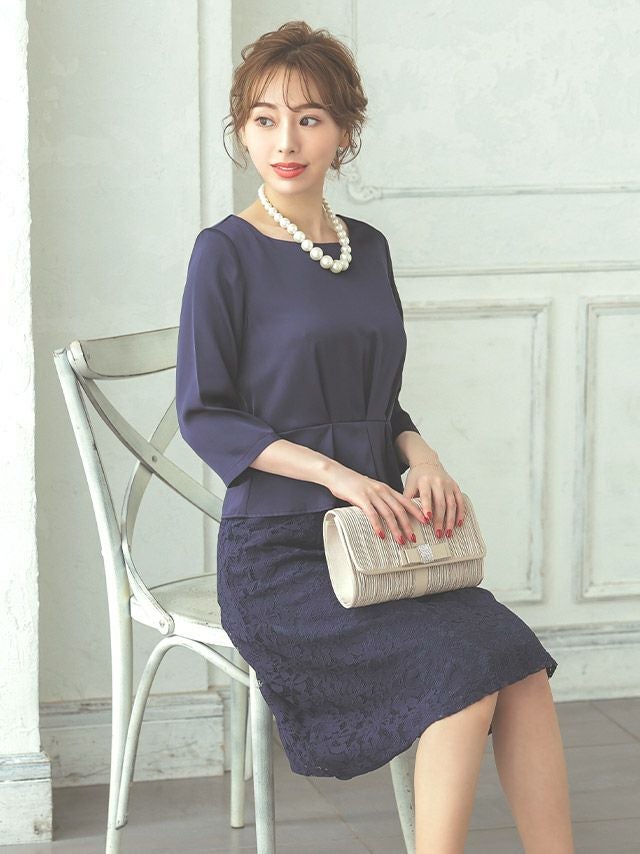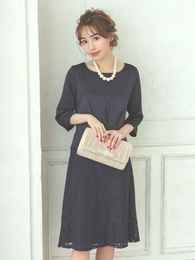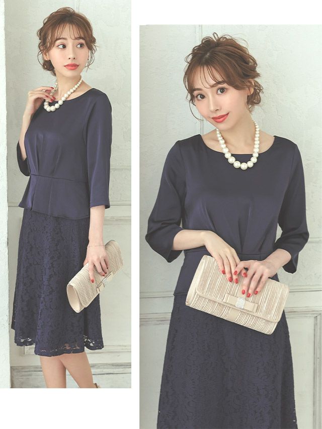 ネイビードレスで、落ち着きのある大人女性を演出。