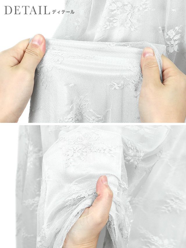 パールネックレス付きフラワーレースミモレ丈ハーフスリーブ結婚式パーティードレスの商品詳細 ディテール2