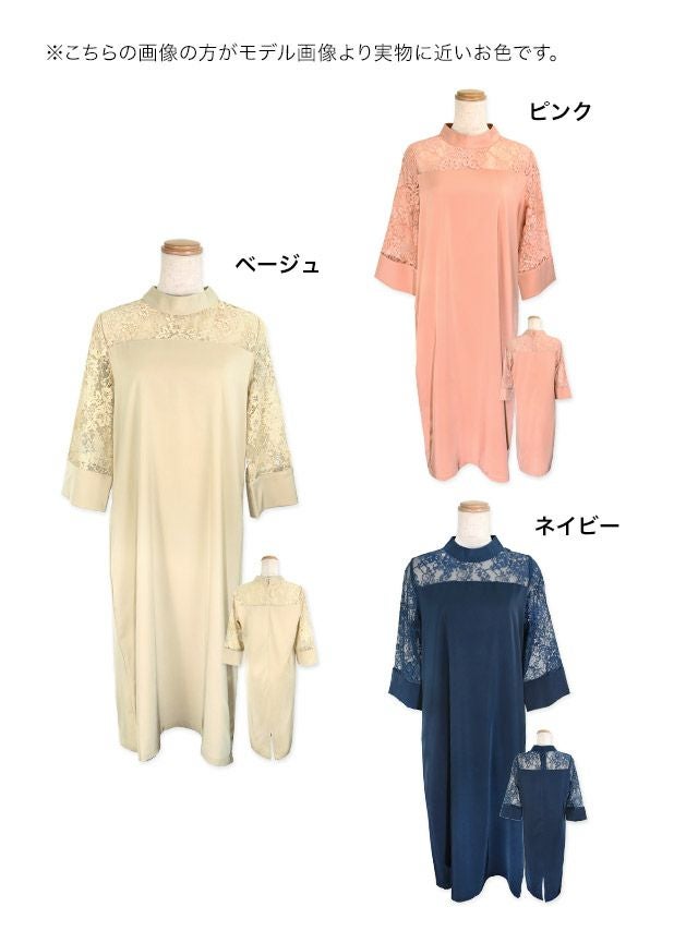 ハイネック大人サテンデザインミモレ丈レーススリーブ結婚式パーティードレス