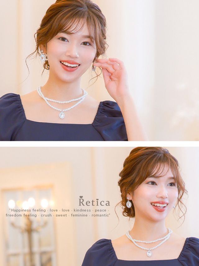 ピアスにも同じ大きさのビジューを用いてるので輝かしい!
