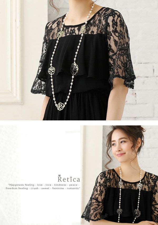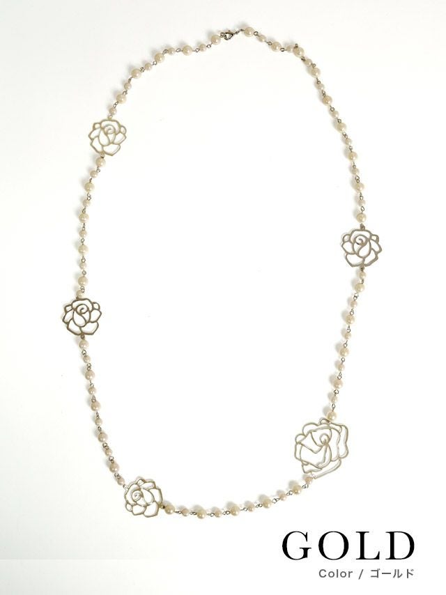 バラのモチーフが付いたパールネックレス!