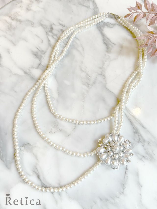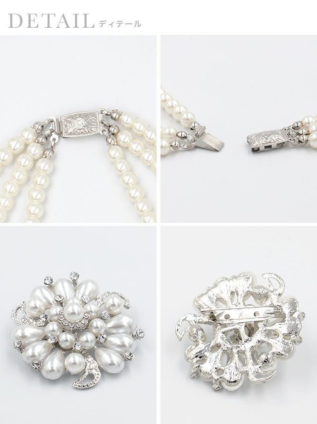 存在感のある輝かしいパールビジューのブローチ付きで