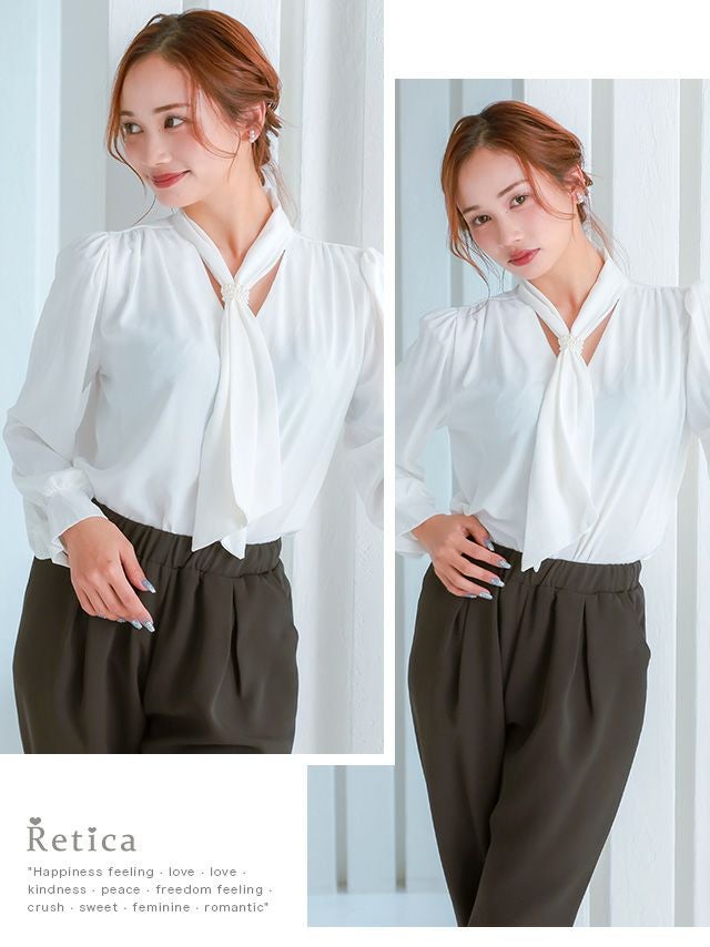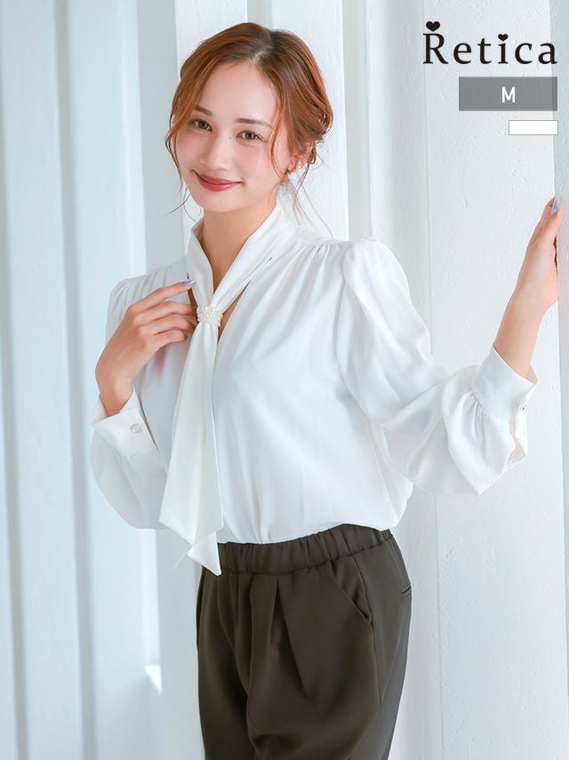 ふんわりとした袖のシルエットが柔らかな印象を与え