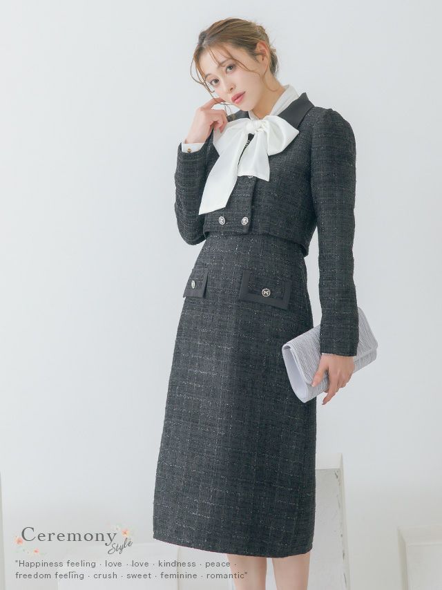 3. SALE ダブルボタンショートジャケット&ジャンバー膝下ワンピーススタイルツイードセレモニースーツ [Retica/レティカ]