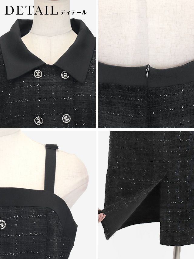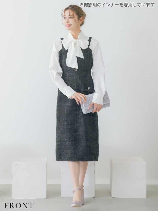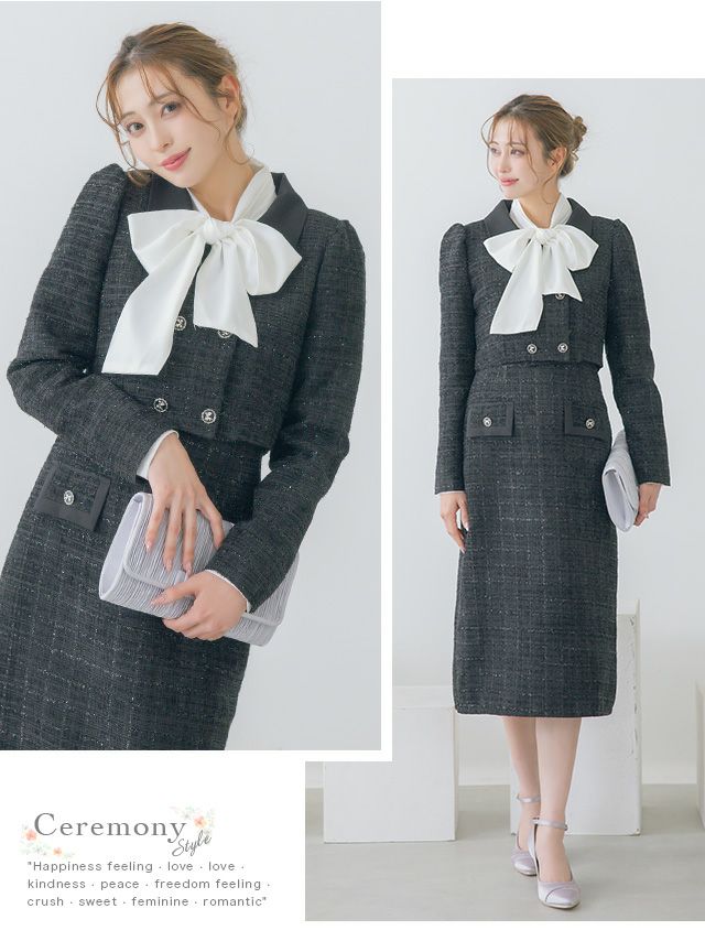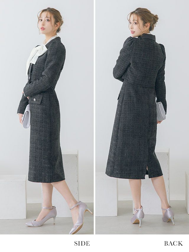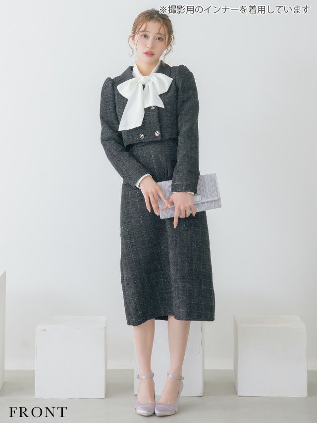 4. SALE ダブルボタンショートジャケット&ジャンバー膝下ワンピーススタイルツイードセレモニースーツ [Retica/レティカ]