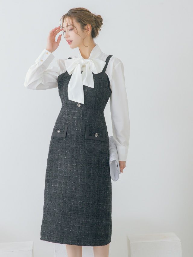 お好みでボウタイブラウスを合わせて