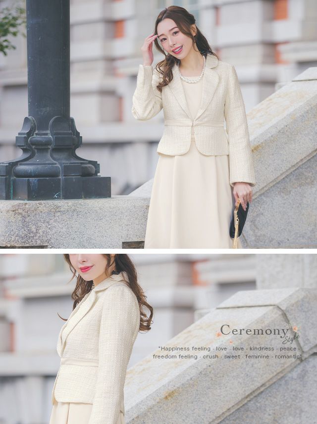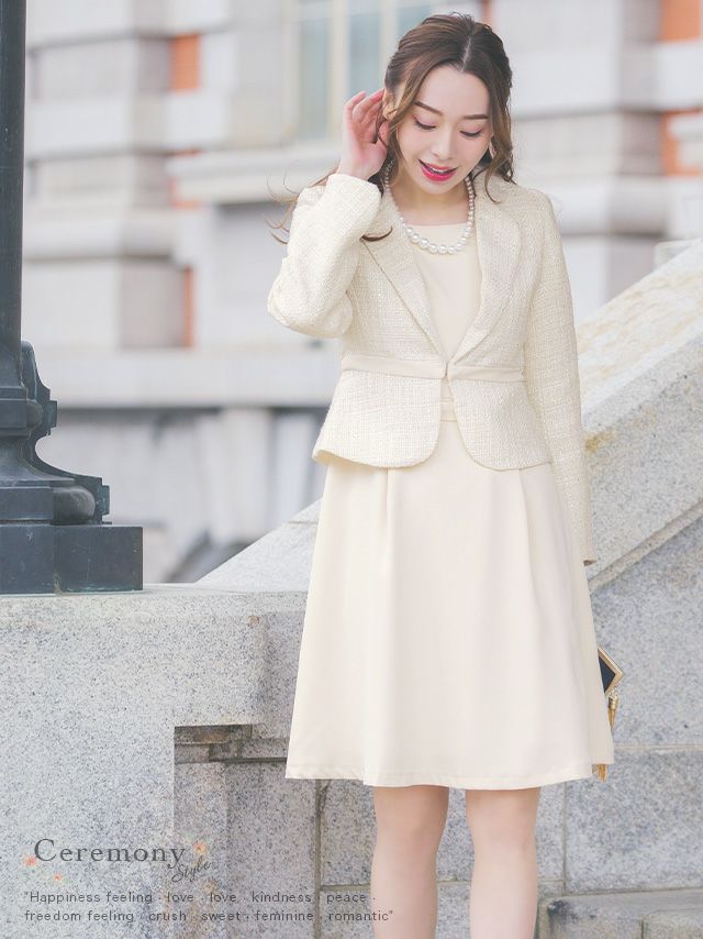 ワンピースタイプのセレモニースーツの場合は、必ずしもジャケットを羽織る必要はありません。