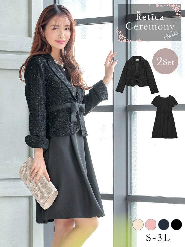 他の画像を見る 大人リッチに様々なコーデを楽しめるセットアップスーツ♪ SALE 付属リボン付きラメツイードショートジャケットフレア膝上ワンピーススタイルセレモニースーツ [Retica/レティカ] ¥ 17,380 ¥ 10,780 税込 詳細を見る お気に入りに追加