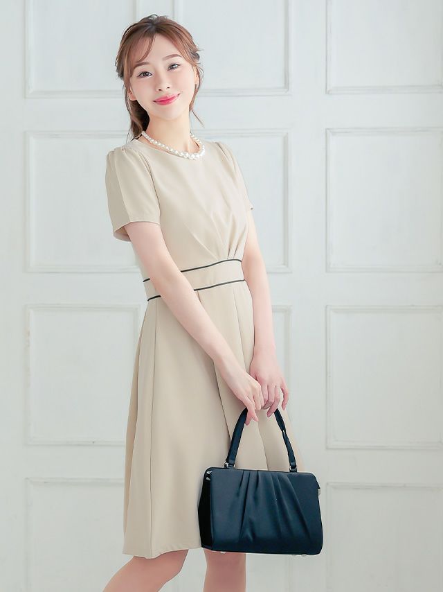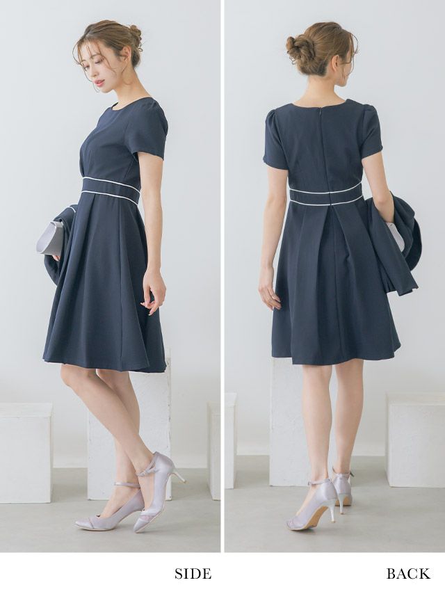 他の画像を見る 計算されたパイピングデザインで着痩せ効果を発揮♪ SALE ノーカラージャケット&タック入りフレア膝下ワンピーススタイルパイピングデザインセレモニースーツ [Retica/レティカ] ¥ 15,180 ¥ 7,590 税込 詳細を見る お気に入りに追加