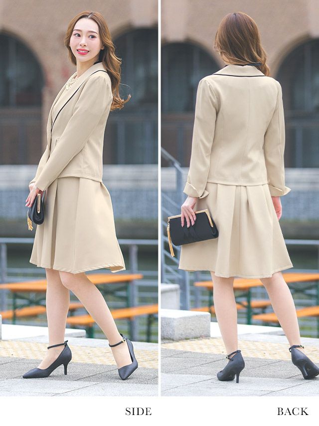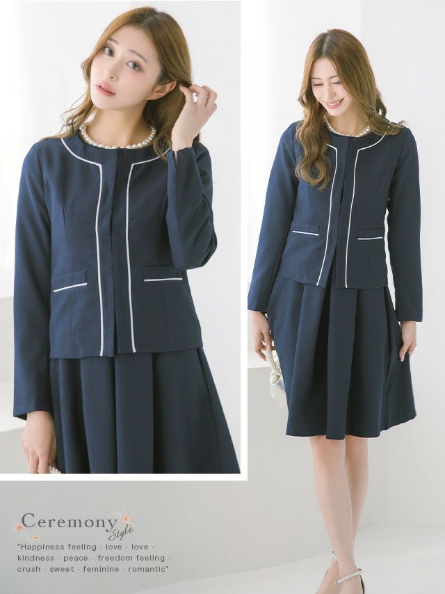他の画像を見る 清楚な雰囲気たっぷりな万能スーツ♪ SALE テーラードジャケット×タック入りフレア膝下ワンピーススタイルパイピングセレモニースーツ [Retica/レティカ] ¥ 17,380 ¥ 8,690 税込 詳細を見る お気に入りに追加