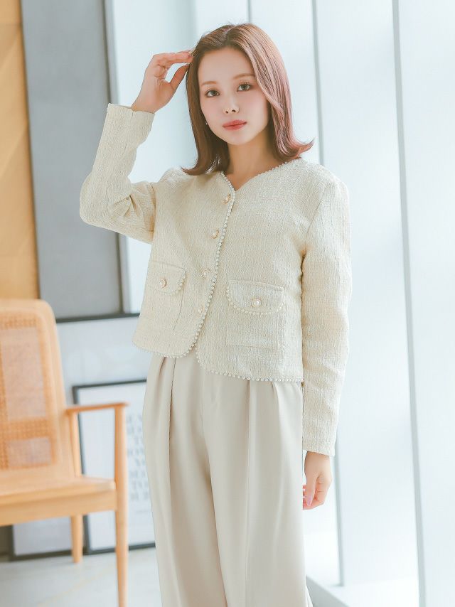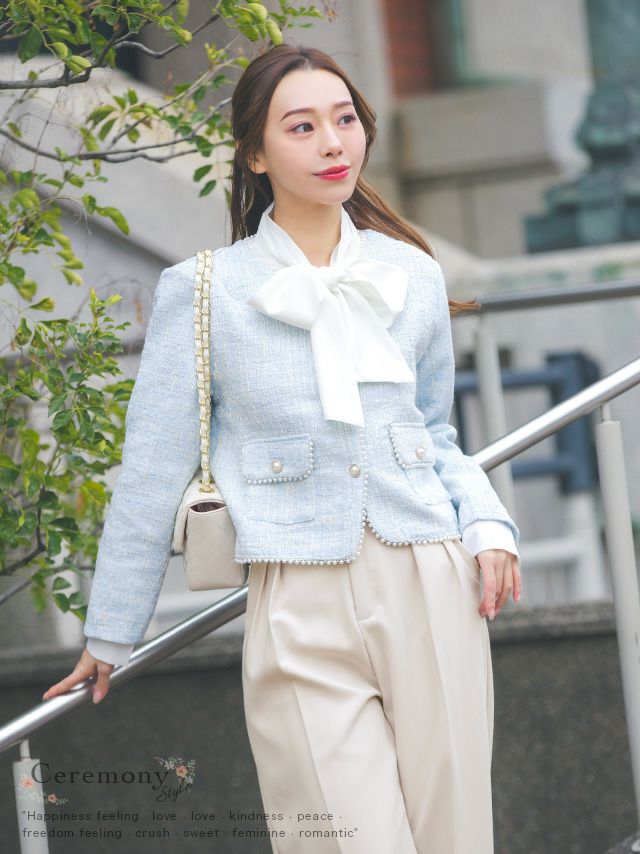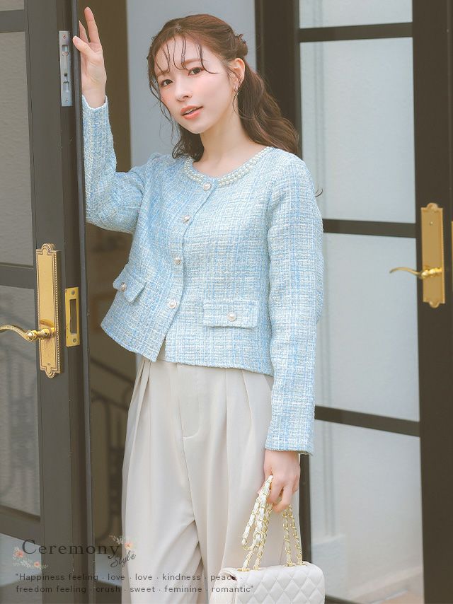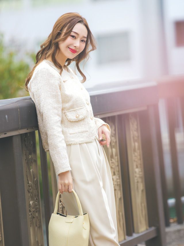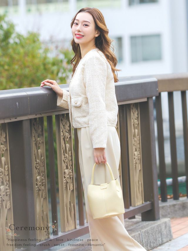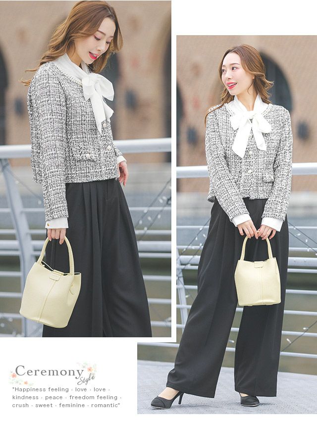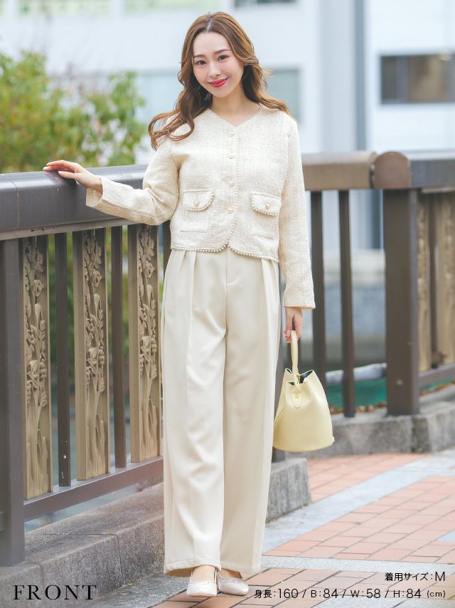 他の画像を見る 清楚な甘さとキレイめを演出♪ SALE ネックパールツイードノーカラージャケット×ワイドパンツスタイルセットアップセレモニースーツ [Retica/レティカ] ¥ 12,980 ¥ 6,490 税込 詳細を見る お気に入りに追加