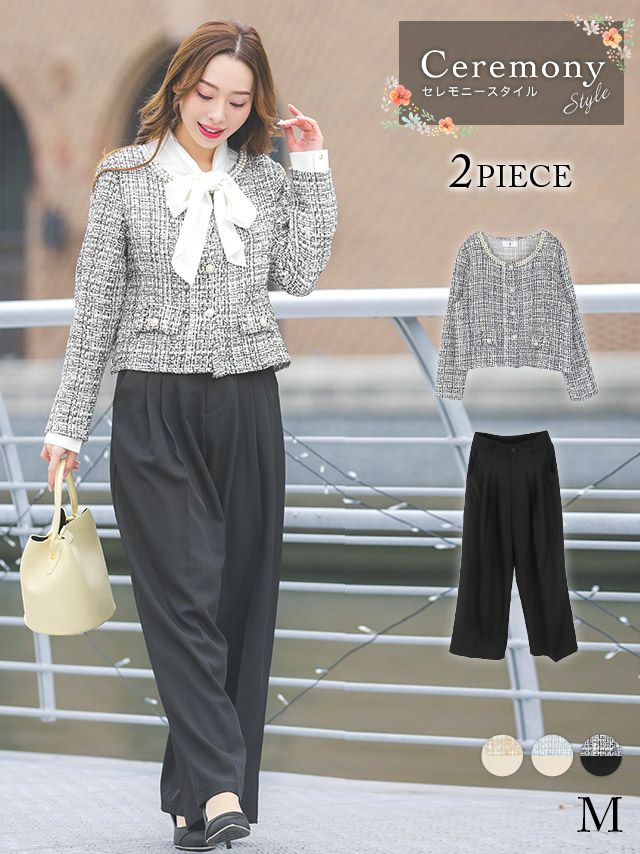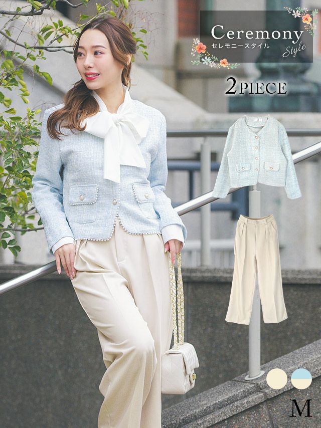 他の画像を見る 写真映えもバッチリ♪ SALE 縁取りパールツイードジャケット×ワイドパンツスタイルセットアップセレモニースーツ [Retica/レティカ] ¥ 12,980 ¥ 6,490 税込 詳細を見る お気に入りに追加