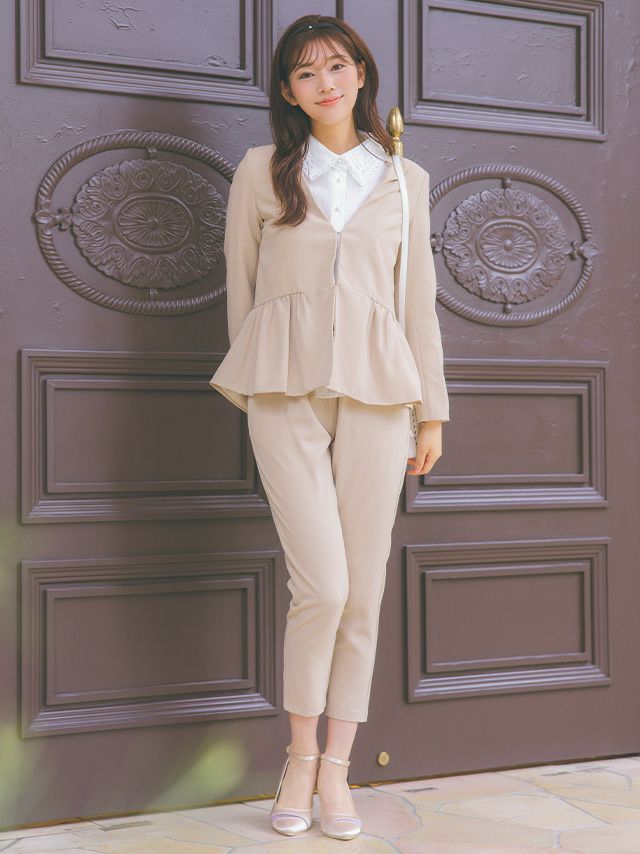 他の画像を見る ワンカラーで着回し力抜群♪ SALE ノーカラーペプラムジャケット×テーパードパンツスタイルセットアップセレモニースーツ [Retica/レティカ] ¥ 15,180 ¥ 10,780 税込 詳細を見る お気に入りに追加