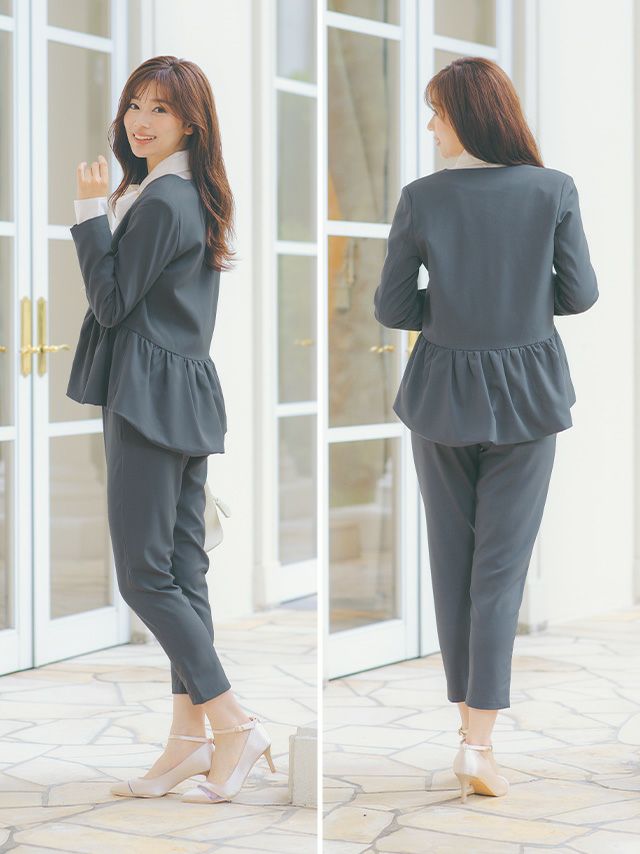 他の画像を見る 着るだけで女性らしい美シルエットを演出 SALE Vカラーペプラムジャケット×テーパードパンツスタイルセットアップセレモニースーツ [Retica/レティカ] ¥ 15,180 ¥ 10,780 税込 詳細を見る お気に入りに追加
