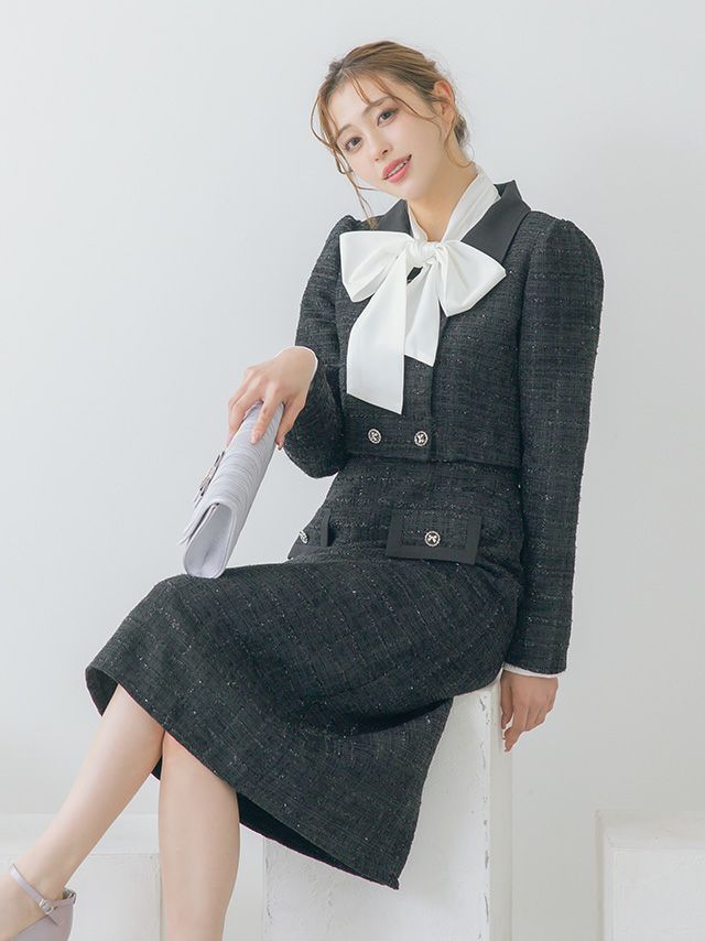 他の画像を見る 2026年新作★きらめく大人ツイード♪ [SALE] ラメ入りツイードショート丈ジャケットスーツ(Sサイズ~3Lサイズ) (ブラック) ¥ 14,080 ¥ 10,780 税込 詳細を見る お気に入りに追加