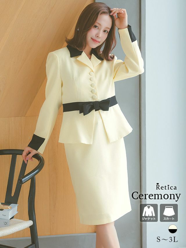 他の画像を見る 女性らしさを引き立てる♪ SALE リボンデザインペプラムジャケット×膝下タイトスカートスタイルセレモニースーツ [Retica/レティカ] ¥ 14,300 ¥ 11,880 税込 詳細を見る お気に入りに追加