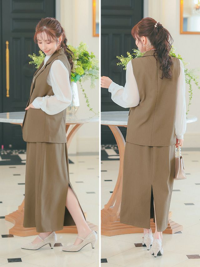 他の画像を見る お洒落とスタイルアップを叶える♪ SALE ワンカラーベスト×膝丈フレアスカートスタイルセットアップセレモニースーツ [Retica/レティカ] ¥ 11,000 ¥ 6,490 税込 詳細を見る お気に入りに追加
