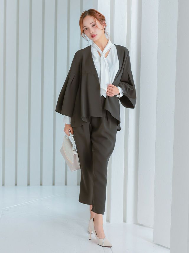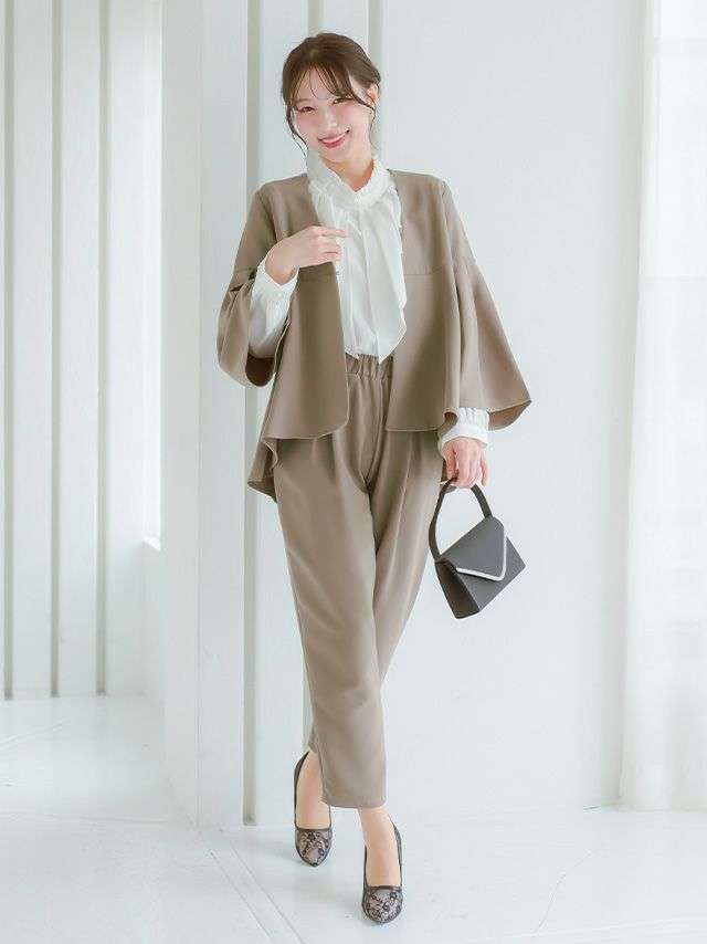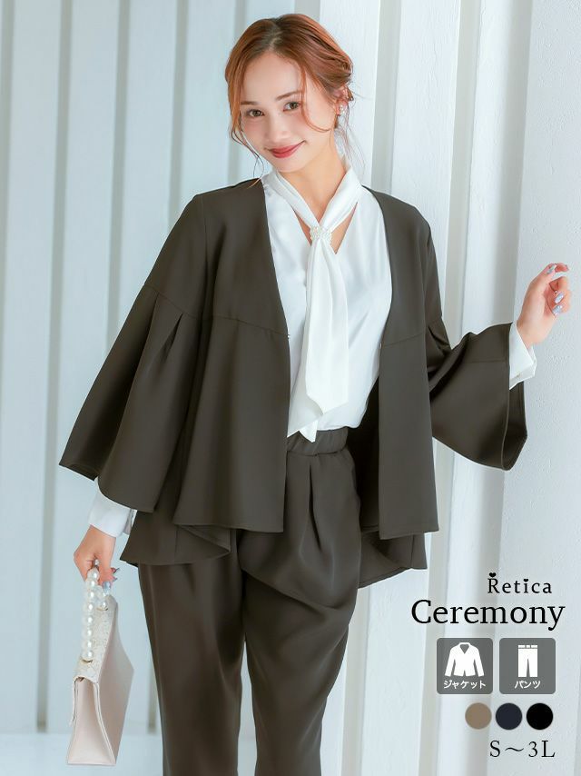 他の画像を見る ふんわりシルエットで上品に♪ フレアスリーブジャケット×テーパードパンツスタイルセットアップセレモニースーツ [Retica/レティカ] ¥ 8,250 税込 詳細を見る お気に入りに追加