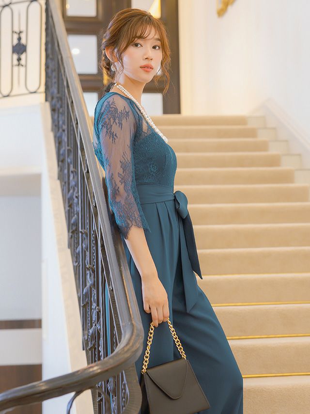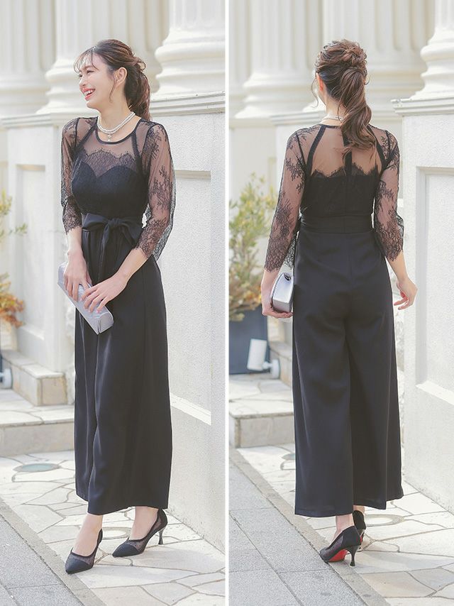 ビスチェ風シアーレース生地ワイドパンツドレス結婚式パーティードレスのカラーバリエーション画像
