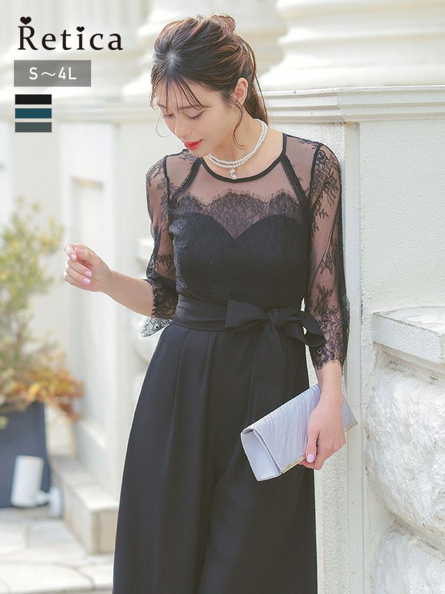 優雅でエレガントなシルエットを作り出す♪ SALE ビスチェ風シアーレース生地ワイドパンツドレス(結婚式パーティードレス [Retica/レティカ]