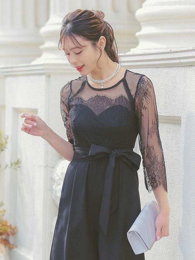 5. SALE シアーレース袖オールインワンパンツドレス(結婚式パーティードレス [Retica/レティカ]