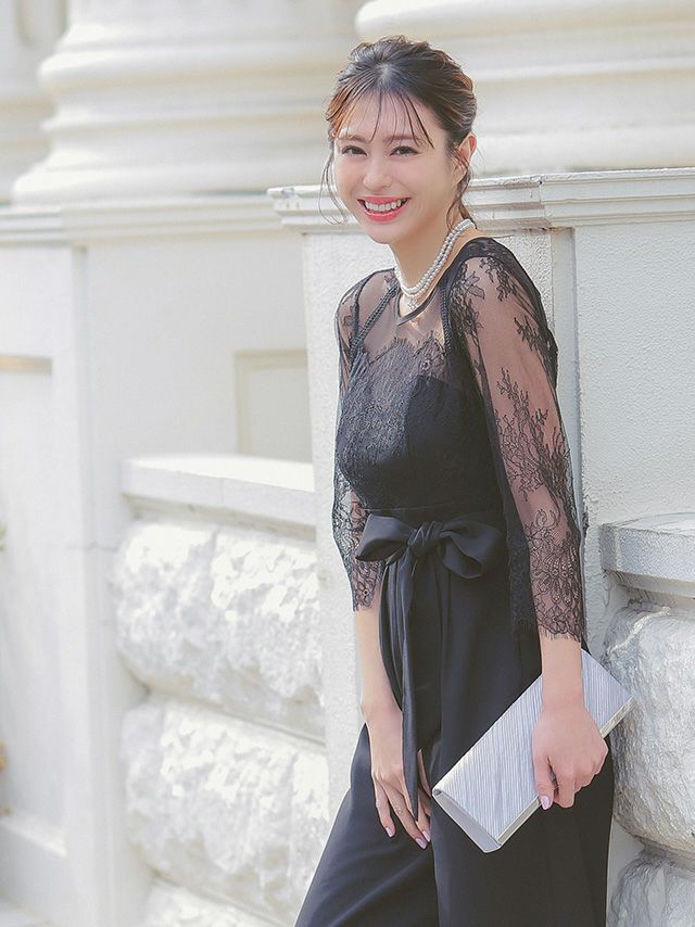 シアーレース袖オールインワンパンツドレス結婚式パーティードレスのカラーバリエーション画像