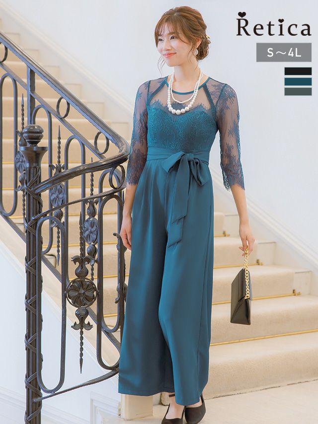 シアー生地で大人っぽく♪ SALE シアーレース袖オールインワンパンツドレス(結婚式パーティードレス [Retica/レティカ]