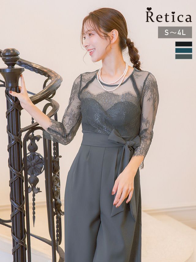 3. SALE シアーレース袖オールインワンパンツドレス(結婚式パーティードレス [Retica/レティカ]