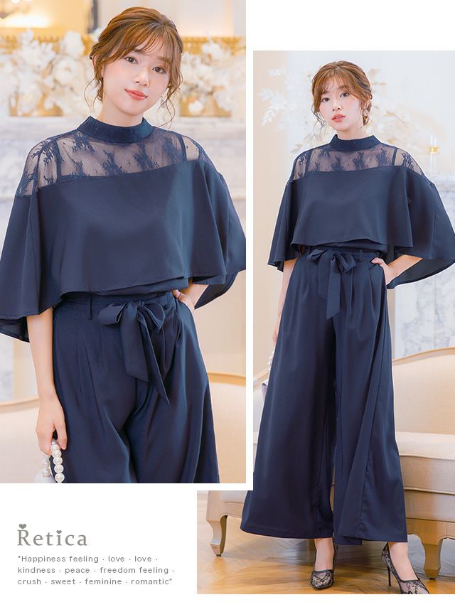 デコルテのレース切り替えで女性らしい透け感♪