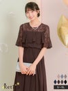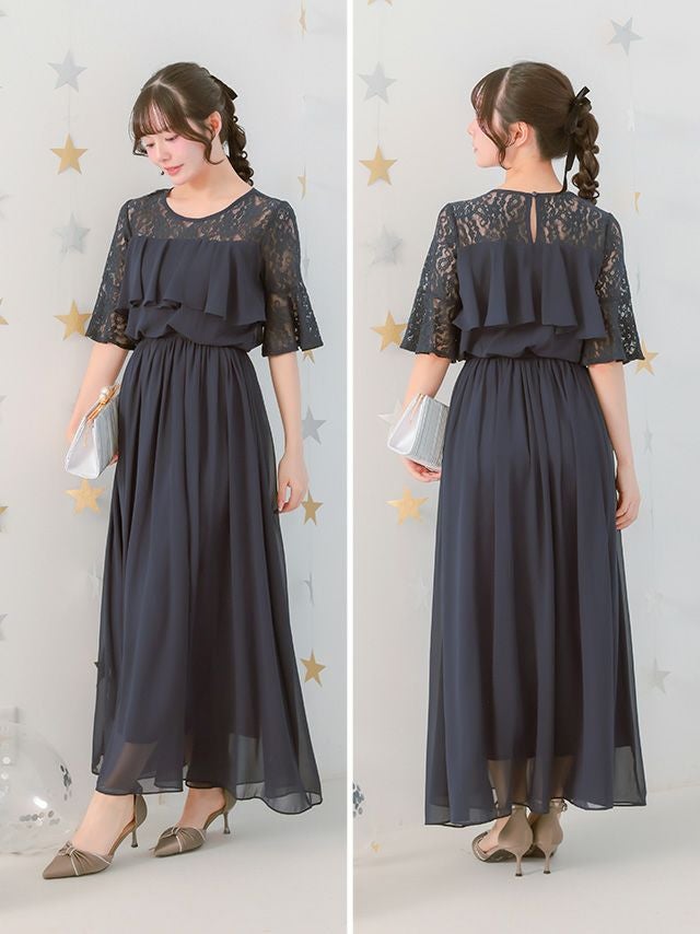 5. ラメなし胸元フリルレースロングパーティードレス(Sサイズ~5Lサイズ)