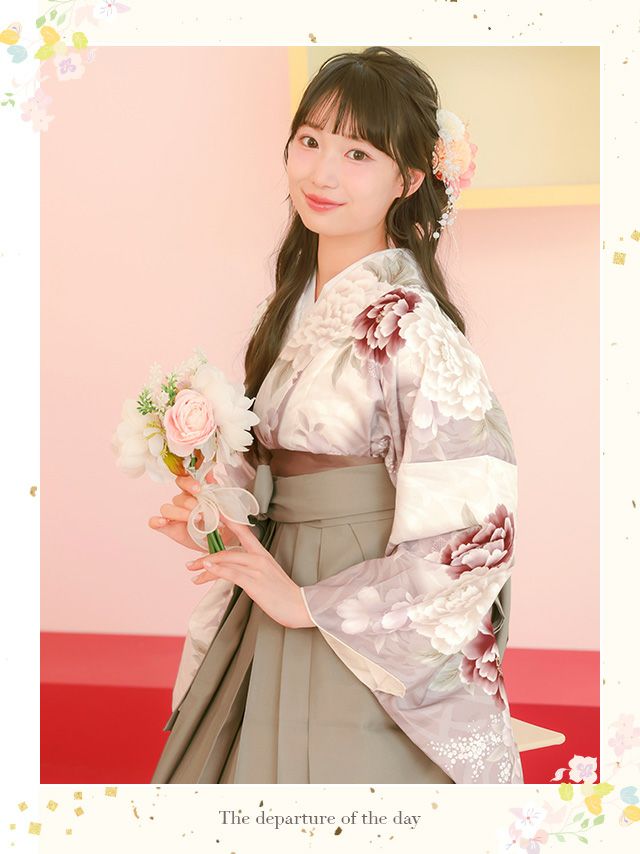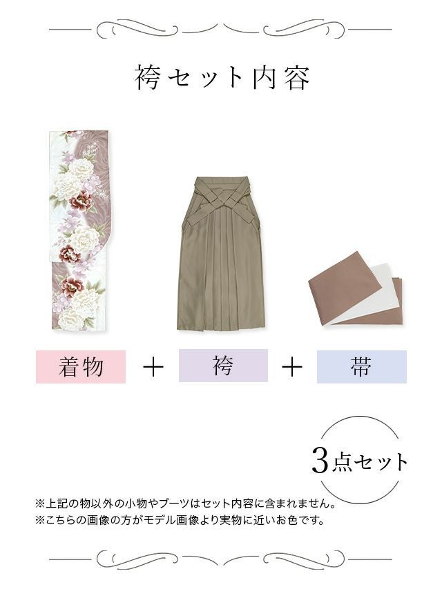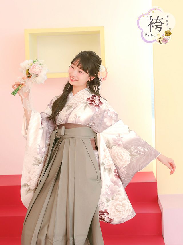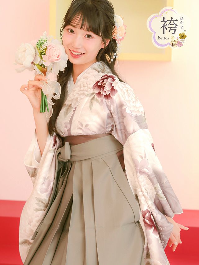 ベージュカラーの袴を合わせた上品で可憐な袴セット