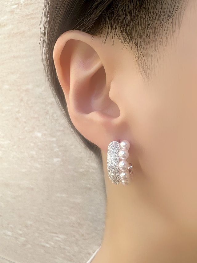 ホワイトパールが煌めくピアス♡