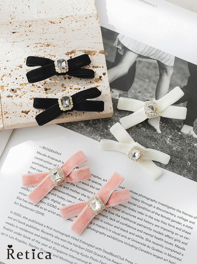 4. ビジュー付きベロアミニリボンクリップ2個セット [Retica/レティカ]