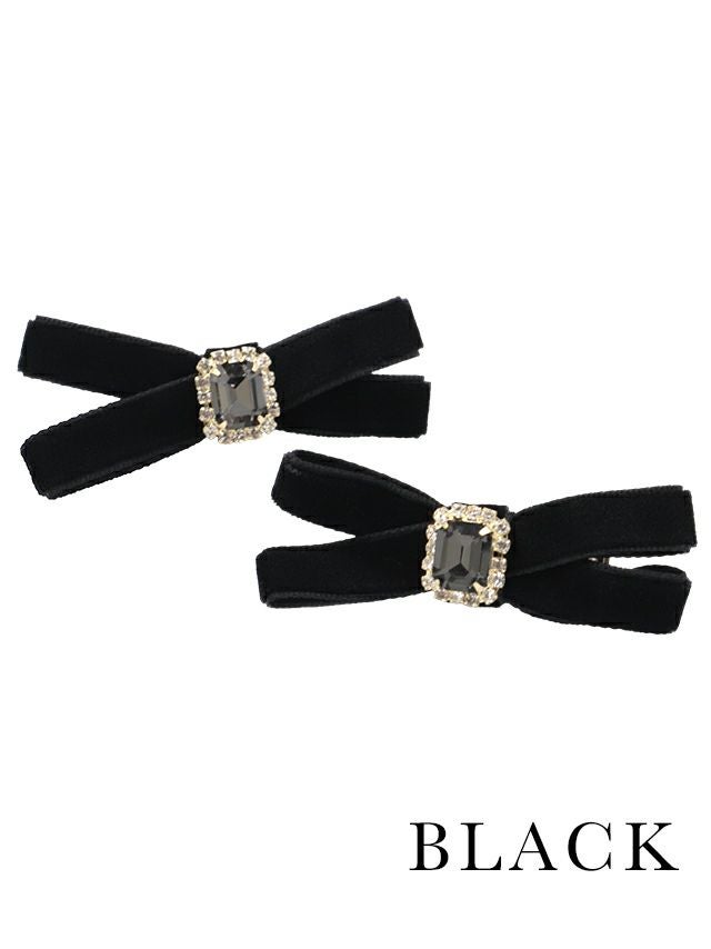 3. ビジュー付きベロアミニリボンクリップ2個セット [Retica/レティカ]