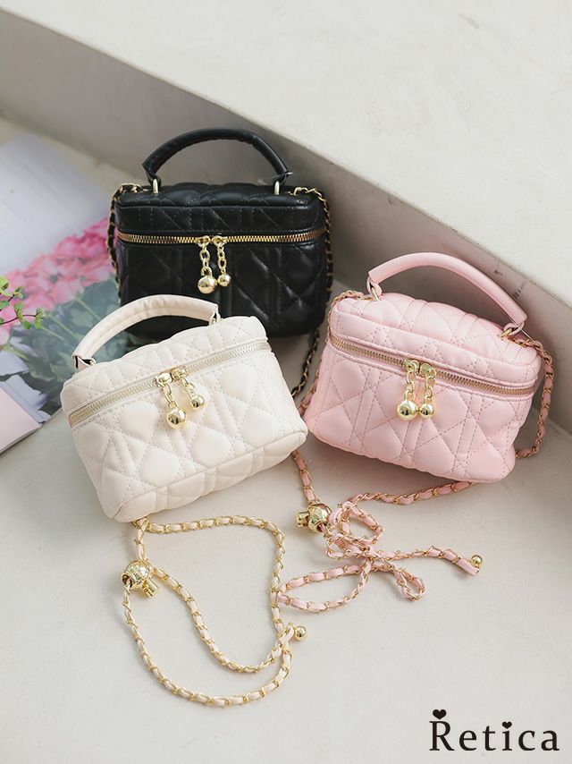 キルティングデザインのスクエア型ミニバッグ