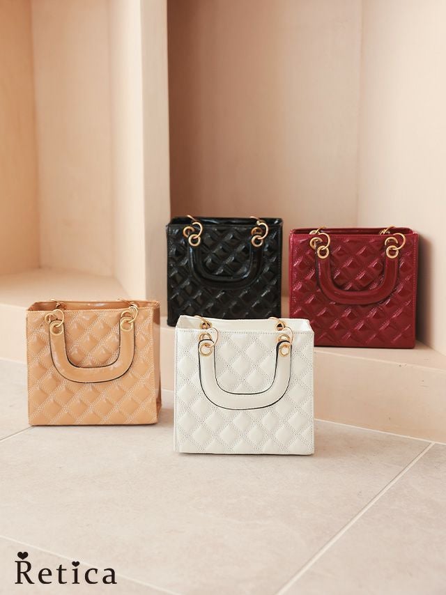 4. ハートチャーム付きキルティングエナメルスクエア型2wayパーティーバッグ [Retica/レティカ]
