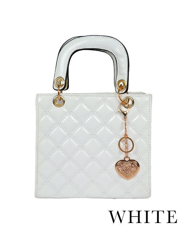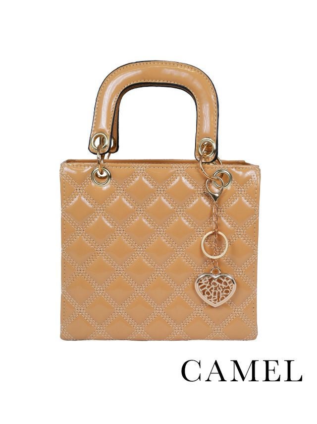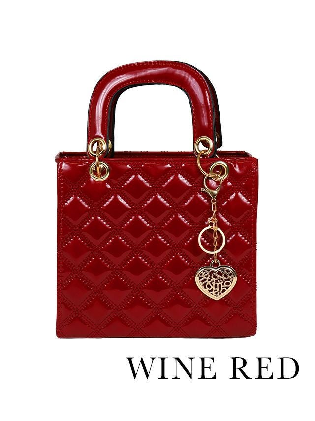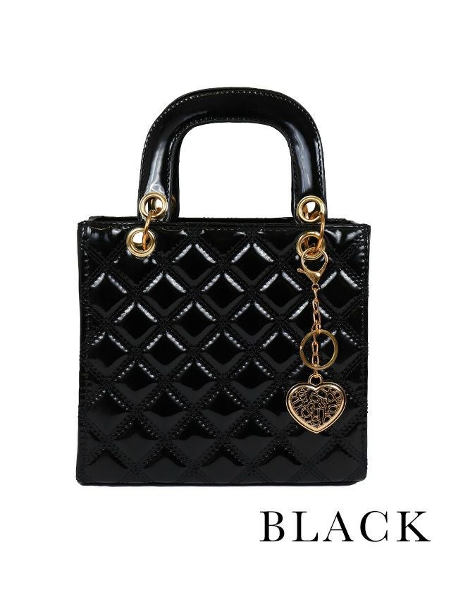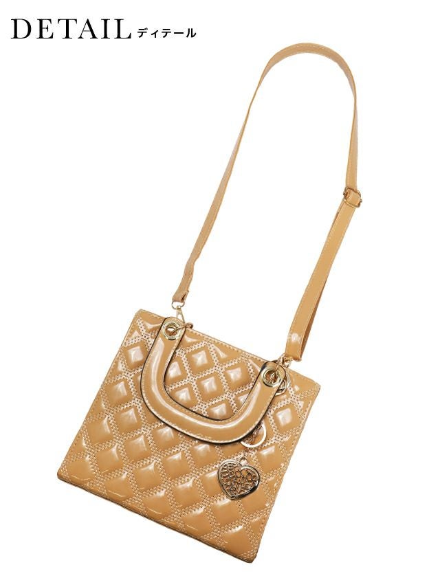 上品な光沢感で高見え♪ ハートチャーム付きキルティングエナメルスクエア型2wayパーティーバッグ [Retica/レティカ]