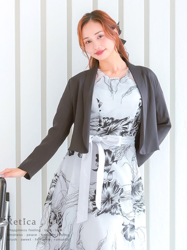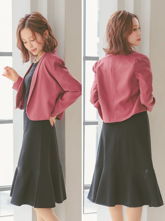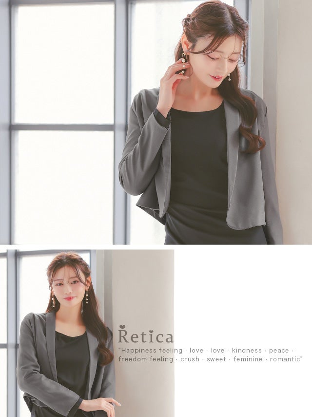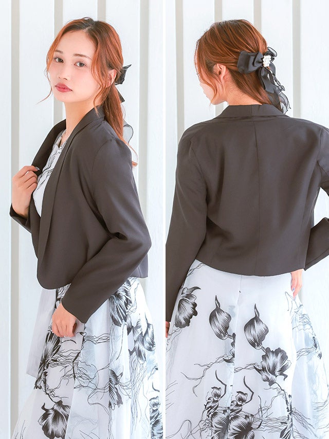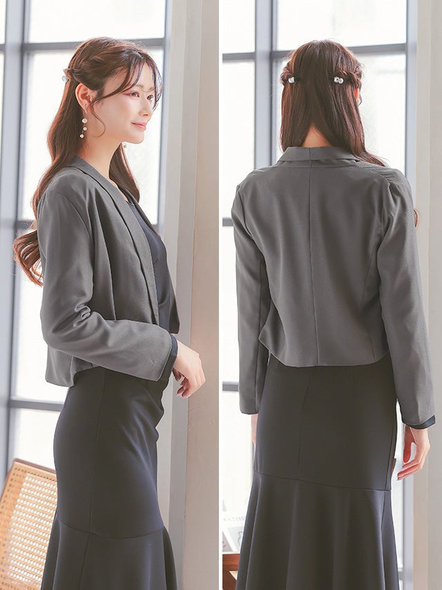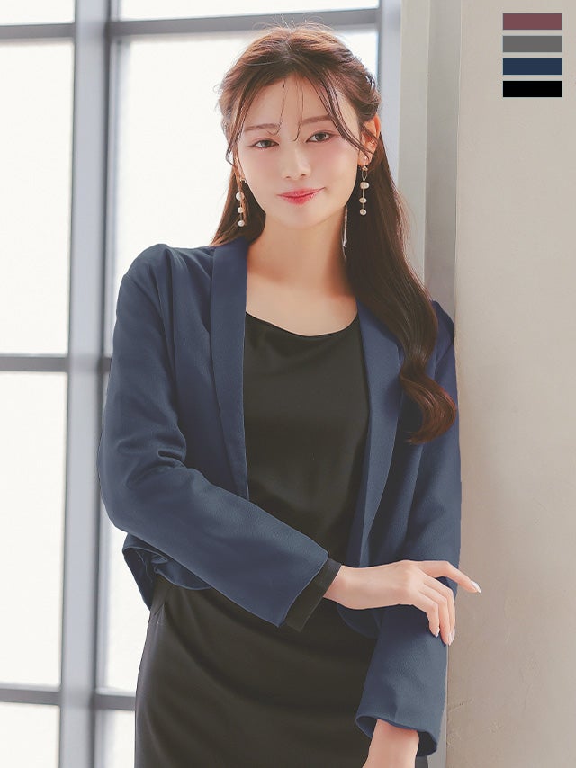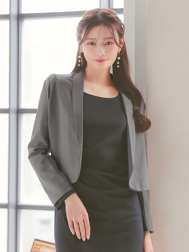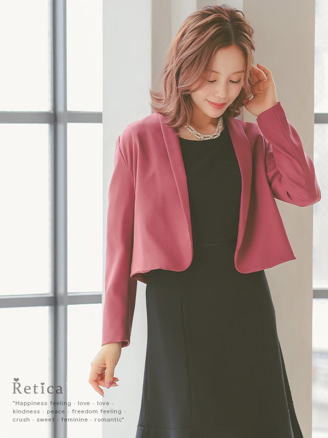 襟付きのデザインがきちんと感を演出するボレロジャケット