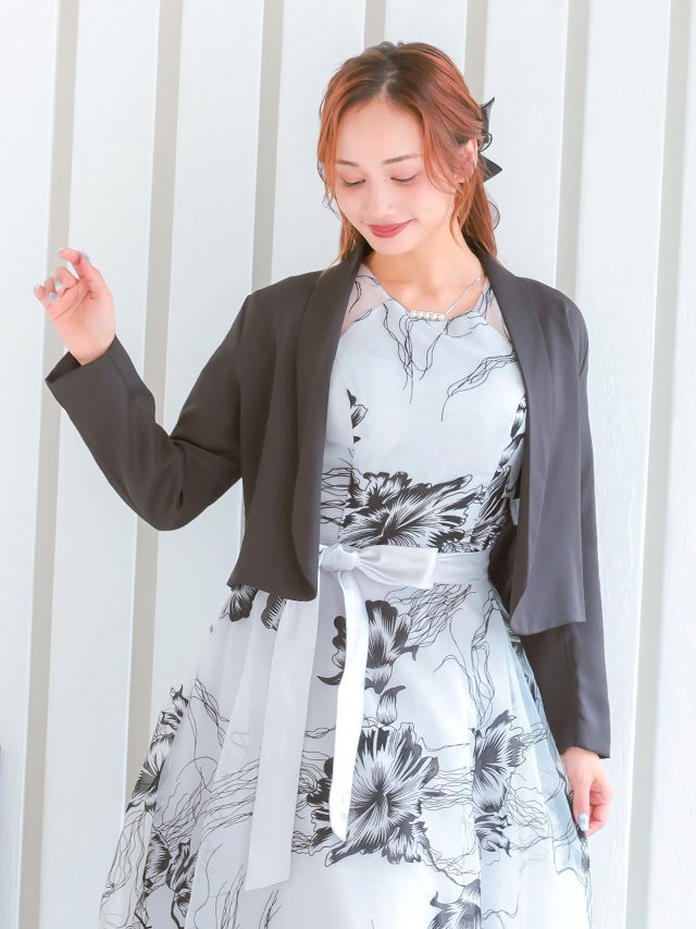 ショート丈なので羽織るだけで上品なスタイルに仕上げてくれます♪