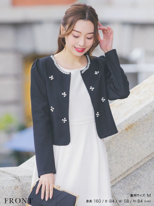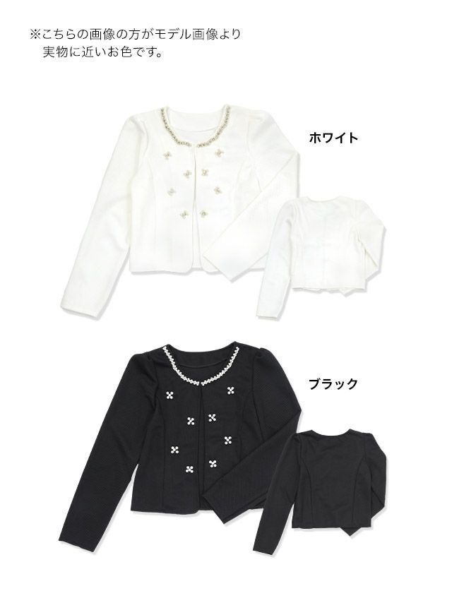 特別感溢れるパール付きジャケット♪ ホワイトパールデザインノーカラーボレロジャケット [Retica/レティカ]