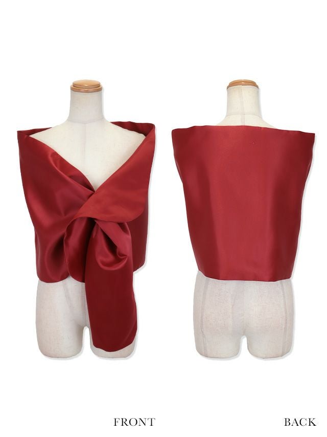 サテンショールのメイン画像 サテンショールのライトベージュフロントバック画像 サテンショールのライトグレーフロントバック画像 サテンショールのイエローオレンジフロントバック画像 サテンショールのワインレッドフロントバック画像 サテンショールのブラックフロントバック画像 サテンショールのカラバリ画像 サテンショールのディティール画像