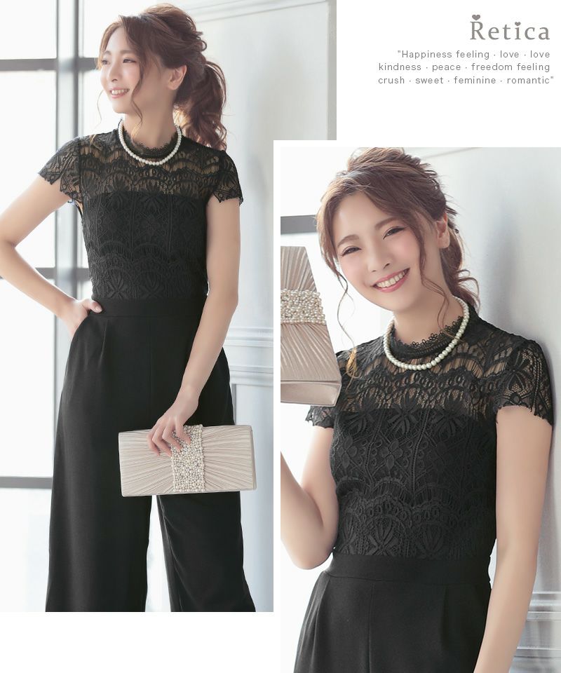 4. [SALE] 大人レースハイウエストパンツフレンチスリーブ結婚式パーティードレス [Retica/レティカ]