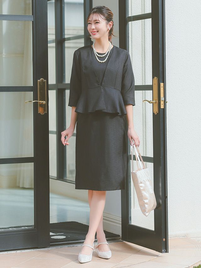 3. [SALE] ペプラムノーカラージャケット×フレア半袖ワンピーススタイルセットアップセレモニースーツ [Retica/レティカ]