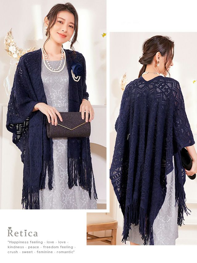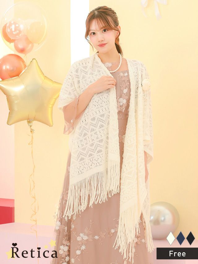 透かし編みデザインフリンジ大判ショール [Retica/レティカ]
