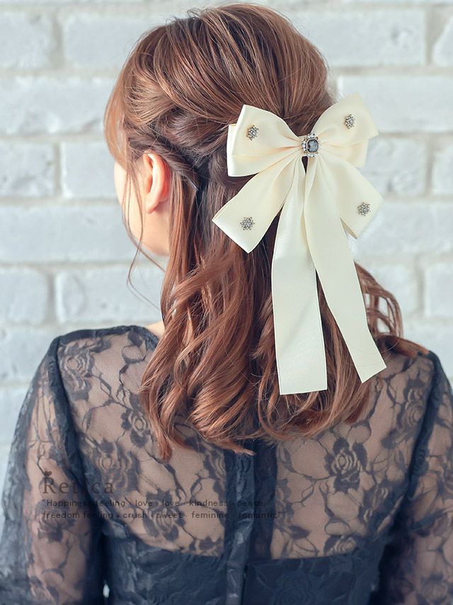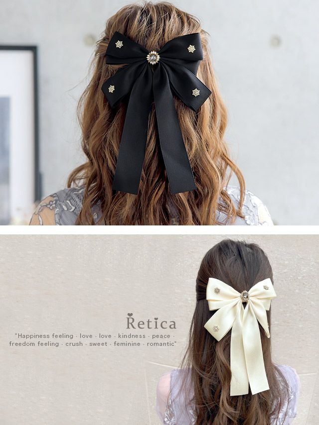 付けるだけでフェミニンに♪ ビジュー×ロングリボンバレッタ [Retica/レティカ]