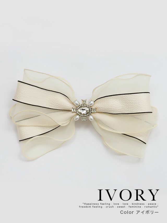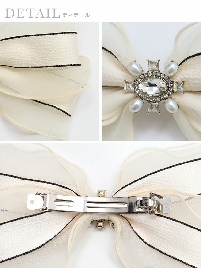 ヘアアレンジを華やかに♪ ビジュー付きバイカラーシフォンリボンバレッタ [Retica/レティカ]