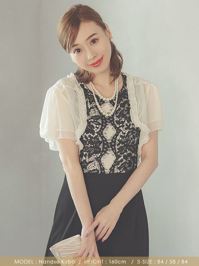 羽織るだけで女性らしさをプラス♪ シフォンフリルバックフラワーレース切替ショートボレロ [Retica/レティカ]