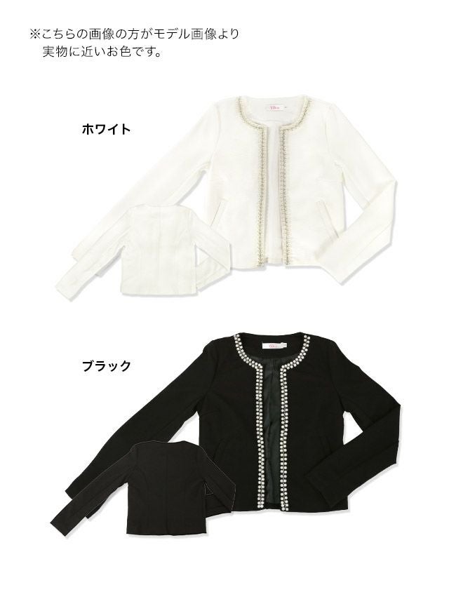 特別感溢れるパール付きジャケット♪ ホワイトパールデザインノーカラーボレロジャケット [Retica/レティカ]