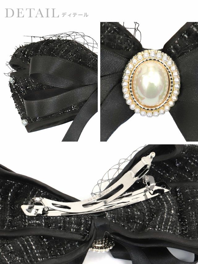 立体的のあるガーリーバレッタ♪ ツイード×サテンリボンメッシュパール付きバレッタ [Retica/レティカ]